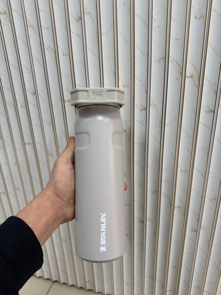 Stanley markalı bej renkli çocuk termos şişesi, içecekleri sıcak veya soğuk tutar. Dayanıklı yapısı ve güvenli kapağı ile taşıması kolaydır. Sıfır üründür