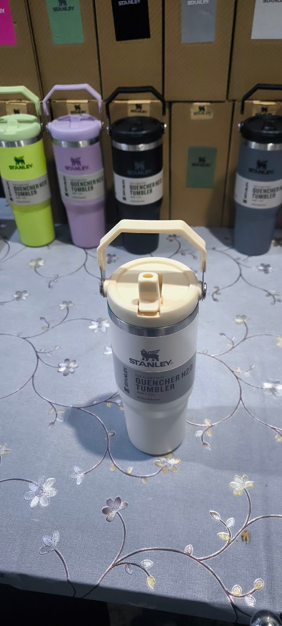 Stanley marka beyaz renkli, hafif tonlarda bebek biberonu. Kolay taşınabilir tutacak ve kapaklı açılır ağız yapısına sahiptir.