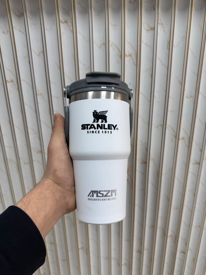 Sıfır üründür Stanley markalı beyaz çocuk termosu, gri kapaklı ve dayanıklı yapısıyla içecekleri uzun süre sıcak tutar. Üzerinde 'STANLEY, SINCE 1913' yazısı bulunur. ☕