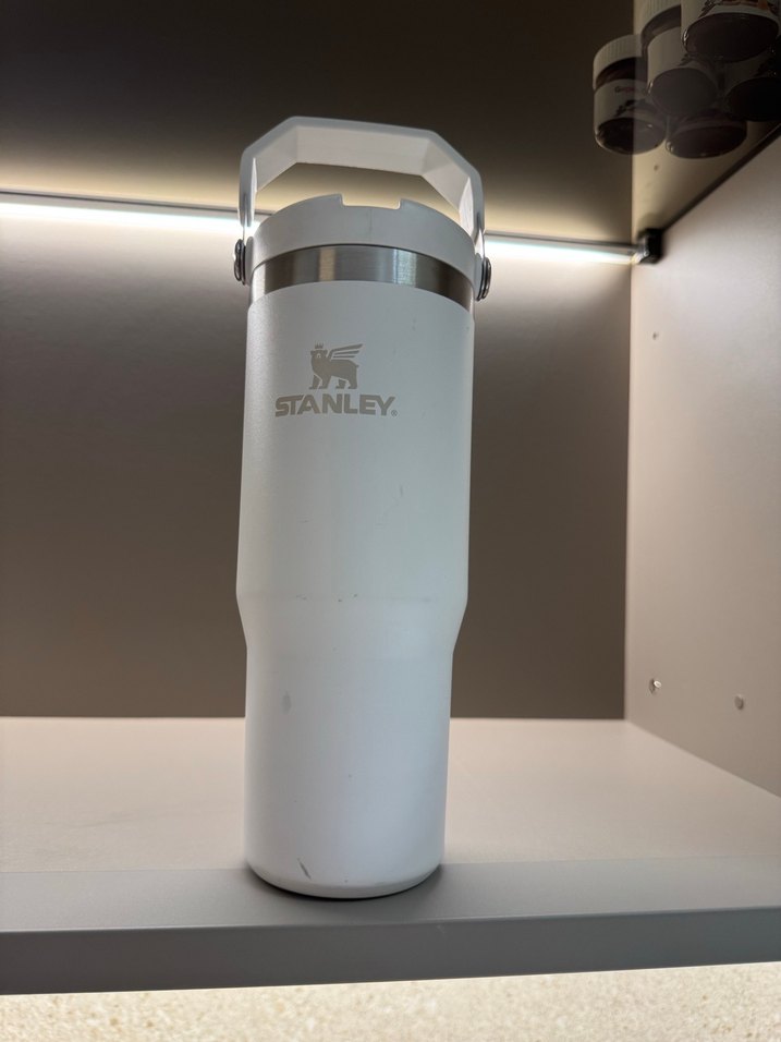 Stanley beyaz termos, dayanıklı sap ve yalıtımlı yapısıyla içecekleri sıcak veya soğuk tutar. Çocuklar ve dış mekan kullanımı için uygundur.