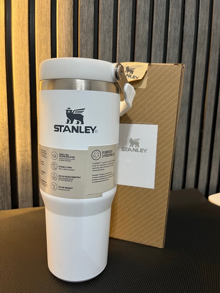 Stanley beyaz termos , içecekleri saatlerce sıcak veya soğuk tutan dayanıklı izolasyona sahiptir. Güvenli kapağı ve hafif yapısıyla kolay taşınır.
