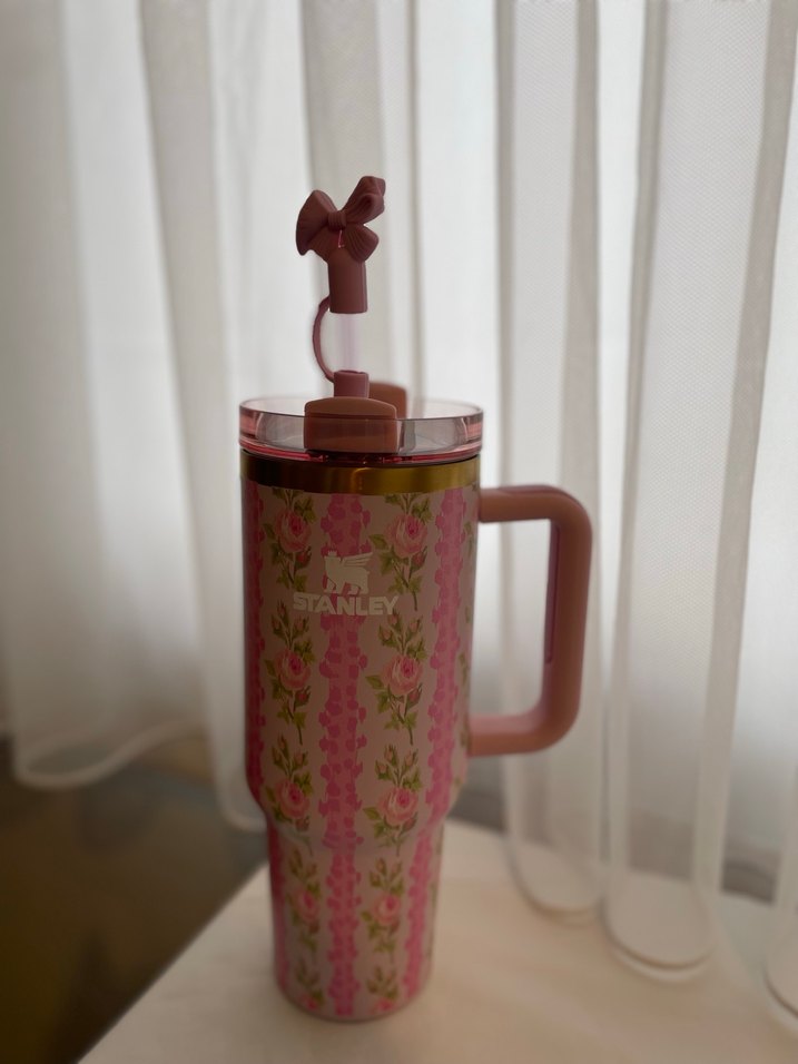 Stanley markalı, pastel pembe çiçek desenli termos. Hiç kullanılmadı. İthal ürün.
