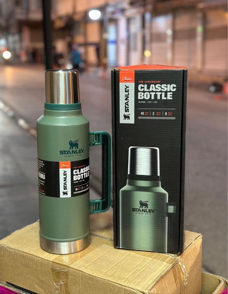 Stanley Classic termos şişe, içecekleri saatlerce sıcak veya soğuk tutar. Taşıma sapı ve paslanmaz çelik kapak bardak olarak kullanılır.
