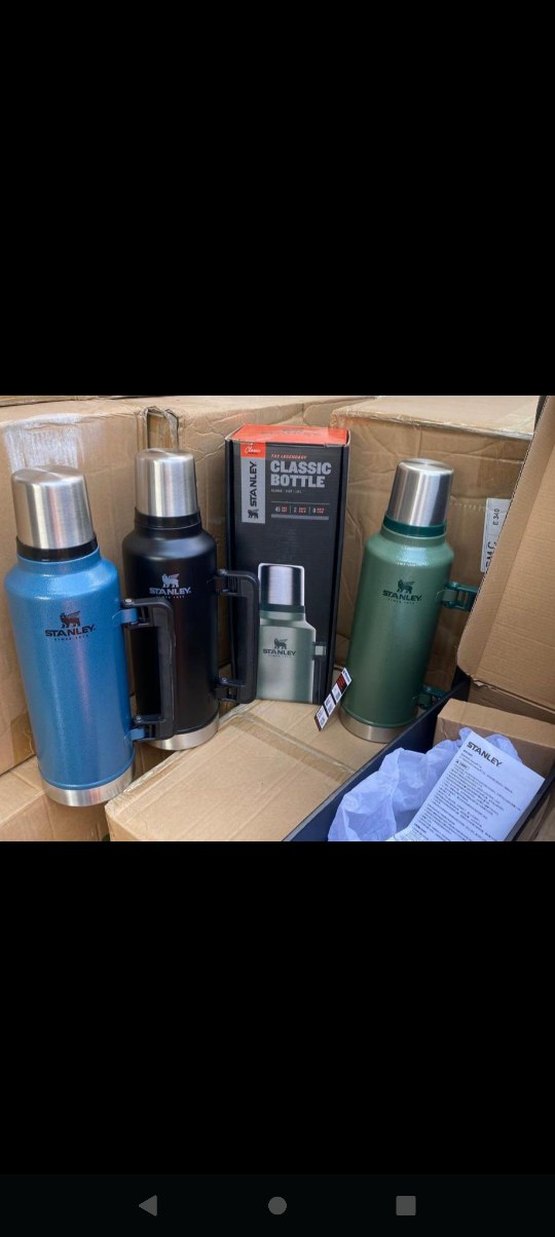 Stanley çocuk termos şişesi, gri renkli, paslanmaz çelik kapak ve saplı. İçecekleri sıcak veya soğuk tutar, dayanıklı ve kullanışlıdır.