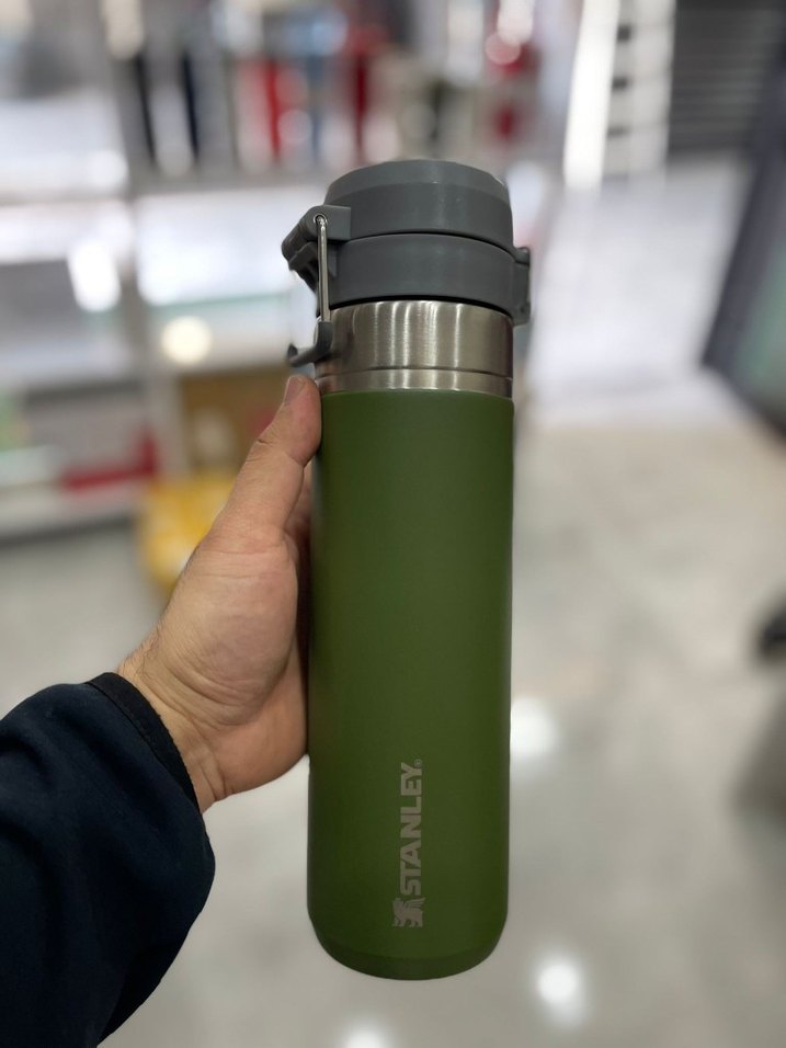 Stanley markalı çocuk termosu, khaki renkte olup güvenli kapak ve paslanmaz çelik iç yapıya sahiptir. Kompakt tasarımıyla elde rahat tutulur.