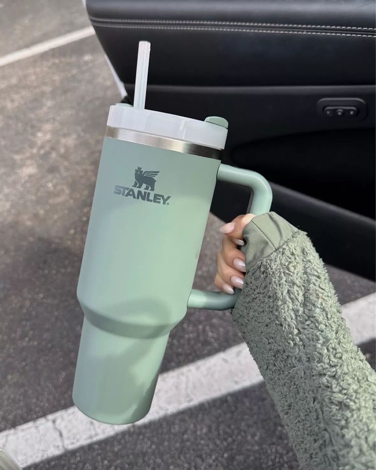Stanley gri büyük kupa, saplı ve pipetli kapağıyla hareket halindeyken içeceklerinizi taşımaya uygundur.