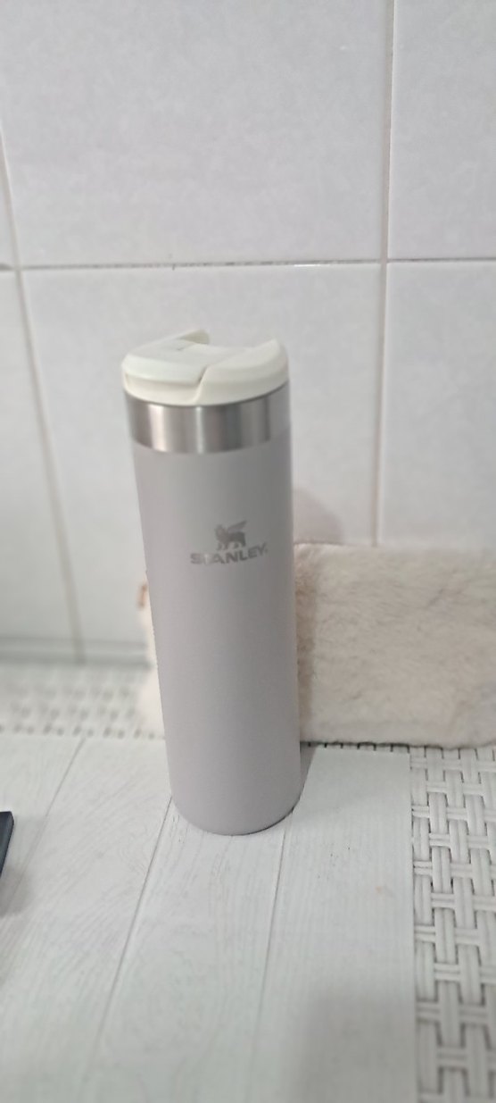Stanley gri çelik termos matara, beyaz kapaklı ve içecekleri sıcak tutar. Şık tasarımı günlük kullanım için uygundur. 3 4 defa kullandım. 3 çeyrek su bardağı 4 buçuk çay bardağı dolduruyor 6-7 saat sıcak tutuyor sızdırma yapmıyor.