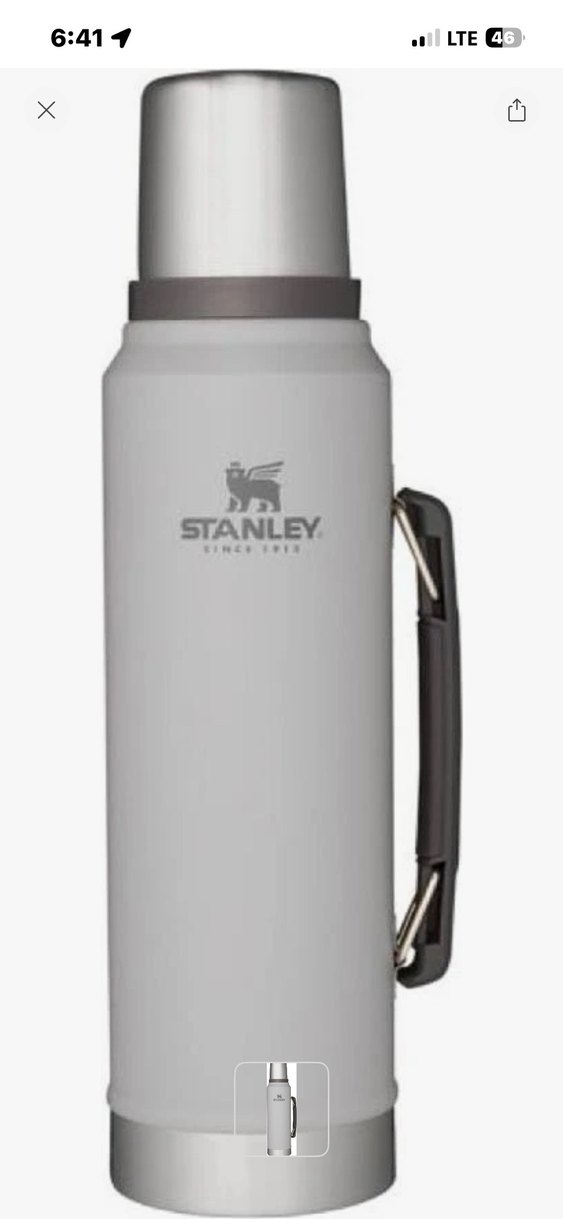 Stanley gri termosta sağlam tutacak ve dayanıklı yapı bulunur, içecekleri sıcak veya soğuk tutar.