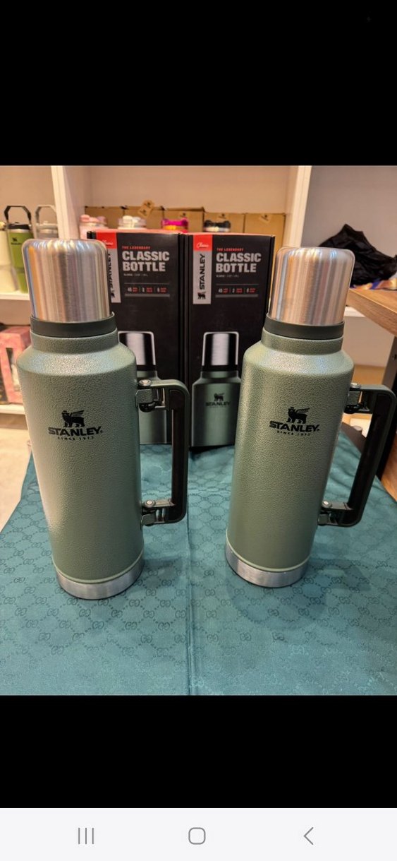 Stanley klasik termos şişe, sağlam tutma sapı ve güvenli kapak ile içeceklerin sıcak kalmasını sağlar. Gri renkli ve dayanıklı yapıya sahiptir. ☕