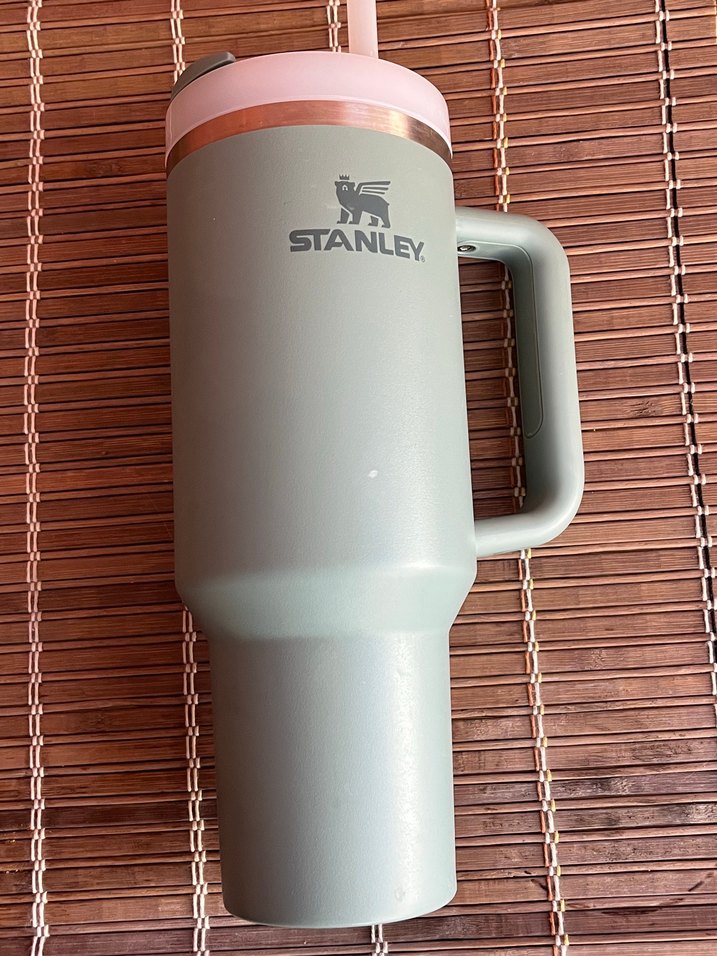 Stanley markalı haki yeşil termos kupa, saplı ve kapaklıdır. İçecekleri sıcak veya soğuk tutmaya uygundur. ☕