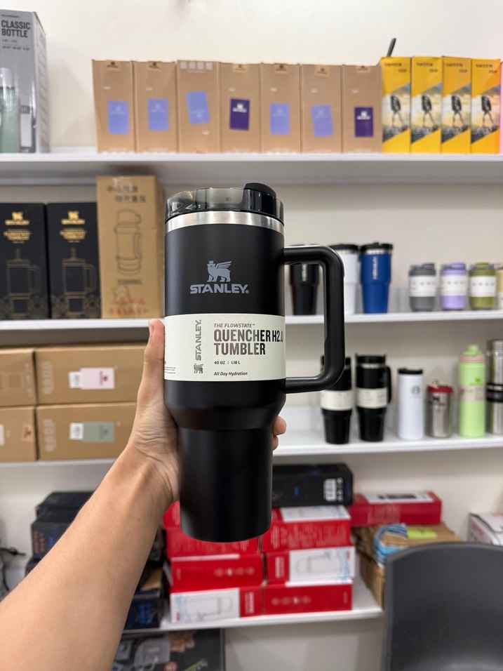 Stanley markalı khaki termos bardak, sağlam sap ve güvenli kapaklıdır. İçeceklerinizi sıcak veya soğuk tutmak için uygundur. ☕