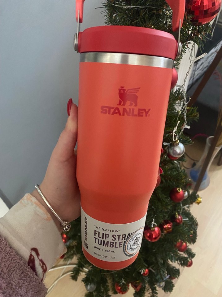 Stanley markalı kırmızı parlak çocuk termosu, kolay içim için flip stroklu ve içecekleri sıcak veya soğuk tutar. Dayanıklı ve taşınabilir.