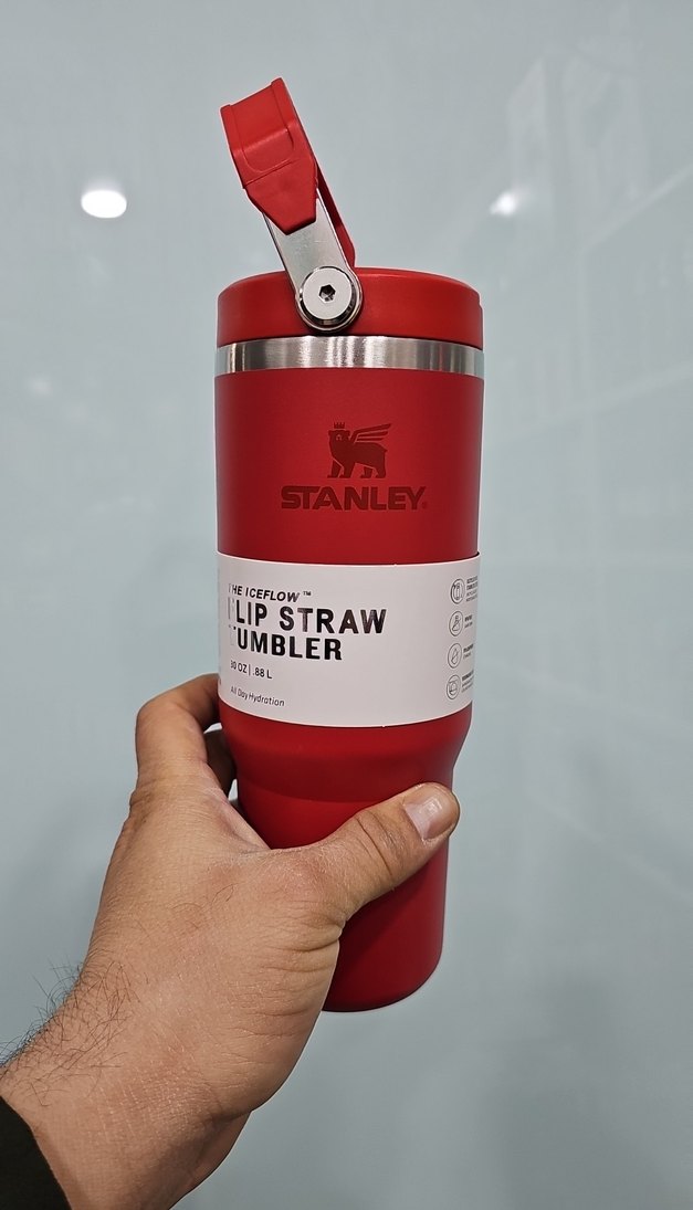 Stanley kırmızı termos matara, kapak ve pipetli tasarıma sahip. İçecekleri sıcak veya soğuk tutar. Canlı renkli ve dayanıklı yapıda.