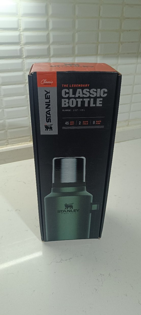 Stanley Klasik Termos Şişe, 1.9 litre kapasiteye sahiptir ve sıvıları 45 saat sıcak, 2 gün soğuk, 6 gün buzlu tutar. Dayanıklı tasarımlıdır.