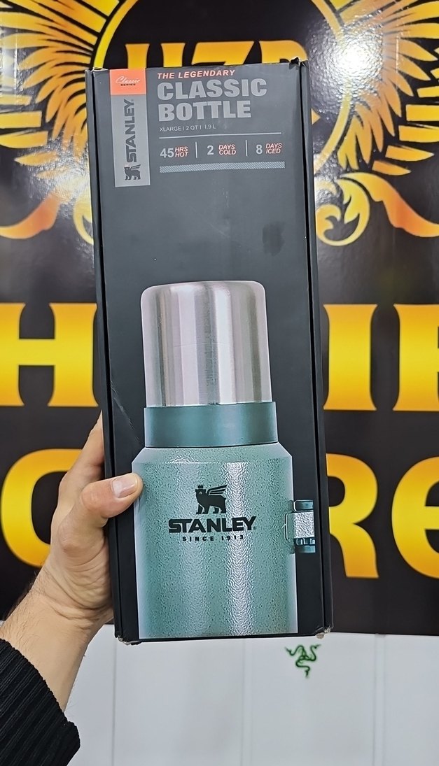 Stanley klasik termos, 1.9 litre kapasiteye sahip. Çift katmanlı vakum yalıtımlı, sızdırmaz ve BPA içermeyen paslanmaz çelikten üretilmiştir. Kapak bardak olarak kullanılır ve elde tutma sapı vardır. Bulaşık makinesinde yıkanabilir.