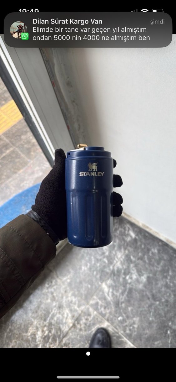Stanley markalı koyu mavi çocuk termos şişe, içecekleri sıcak tutar. Sağlam yapısı ve güvenli kapağı ile rahat taşınır. ️