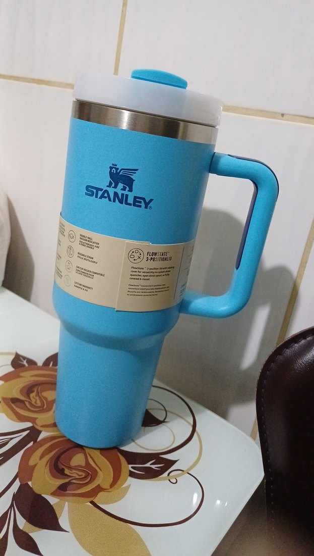 Stanley markalı pastel mavi çocuk termosu, büyük kulplu ve yalıtımlı yapısıyla içeceklerin sıcak ya da soğuk kalmasını sağlar. tüm renkleri mevcuttur. 1 litre fiyat 1500
