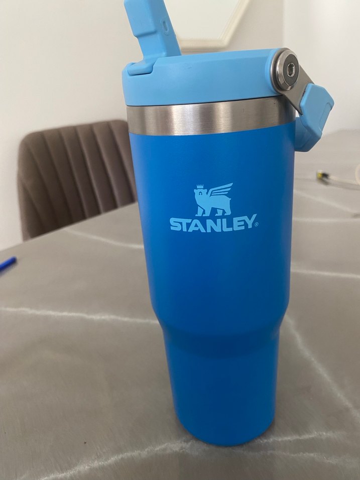 Stanley marka mavi çocuk termosu, renkli tasarımı ve kolay içim için açılır kapaklı güvenli kapağa sahiptir. İçecekleri uzun süre sıcak veya soğuk tutar.