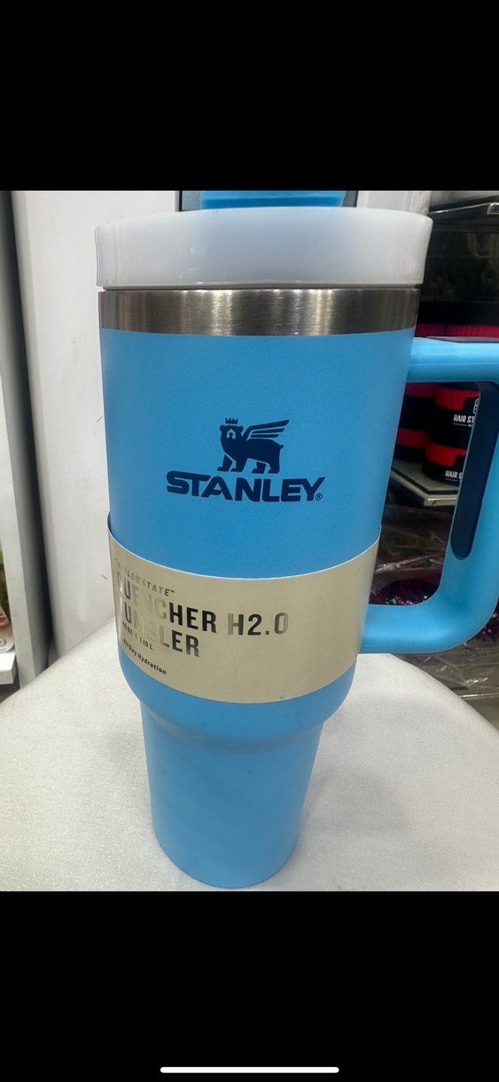 Stanley H2.0 mavi termos bardak, sağlam kulp ve paslanmaz çelik detaylarla içecekleri sıcak veya soğuk tutar.
