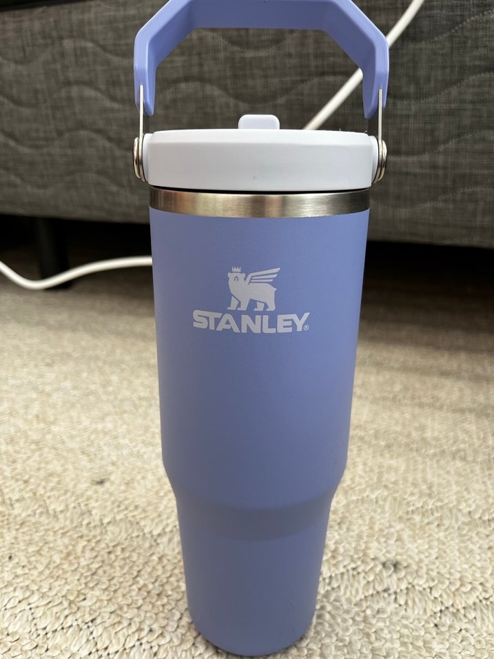 Pastel mavi renkte Stanley çocuk termosu, dayanıklı sap ve yalıtımlı yapıya sahiptir. İçecekleri sıcak ya da soğuk tutar. Çok az hasar var belli olmuyor bile yanındaki stickerları ek ücretle gönderebilirim 0.890 ml