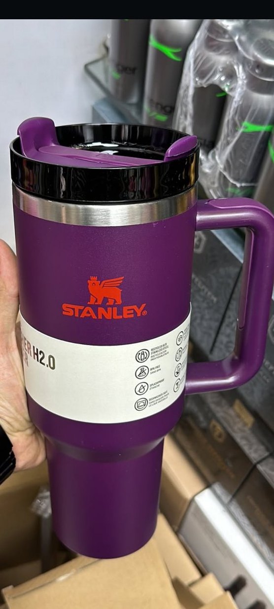 Stanley markalı, koyu mor renkli, sağlam saplı ve kapaklı termoslu kupa. 710 ml kapasite ve dayanıklı paslanmaz çelik detay içerir. ☕