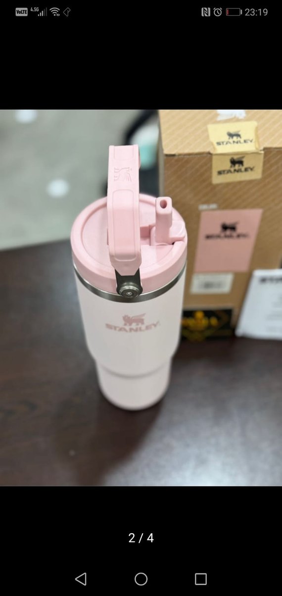 Stanley markalı, pastel pembe renkte çocuk termosu. Pipetli ve kapak açılır kapanır özellikli, içeceklerin sıcaklığını korur.