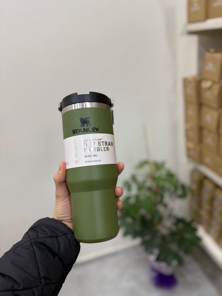 Stanley marka parlak haki renkte, kapaklı ve pipetli çocuk termos şişesi. 30 oz kapasiteye sahip ve içecekleri uzun süre sıcak veya soğuk tutar. Detaylı bilgi için WhatsApp 5012540747