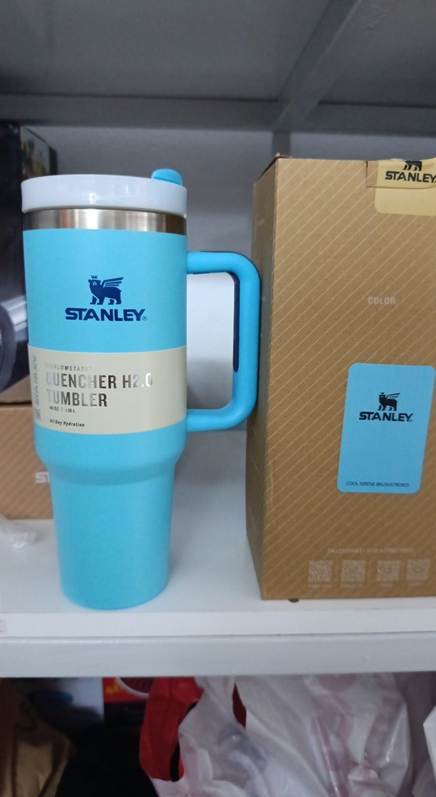 Stanley markalı pastel mavi renkli, kulplu ve kapaklı termoslu kupa, içeceklerin sıcak veya soğuk kalmasını sağlar. Dayanıklı yapıya sahiptir.