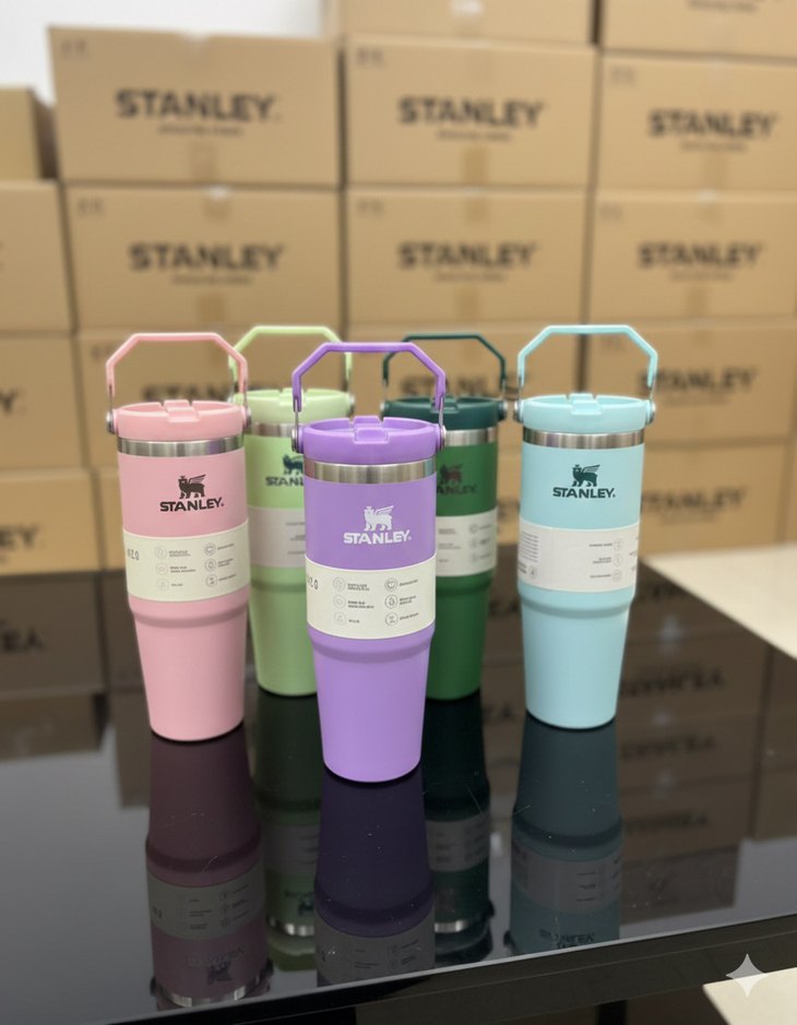 Stanley markalı, paslanmaz çelik detaylı ve saplı pastel renkli termos pipetli İçecekleri sıcak veya soğuk tutar. Farklı renk seçenekleri mevcuttur. ☕