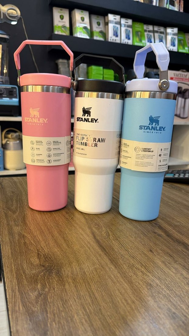 Stanley pastel renklerde, dayanıklı çelik yapıya sahip termos muglar. Sağlam kulplu ve içecekleri sıcak veya soğuk tutar. ☕