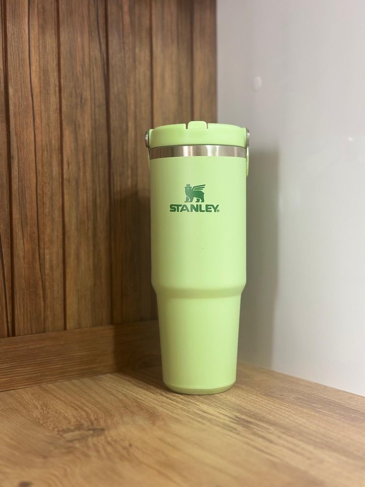 Stanley marka pastel yeşil termos bardak, içecekleri sıcak veya soğuk tutar. Dayanıklı yapısı ve kapaklı tasarımıyla kullanışlıdır. ☕
