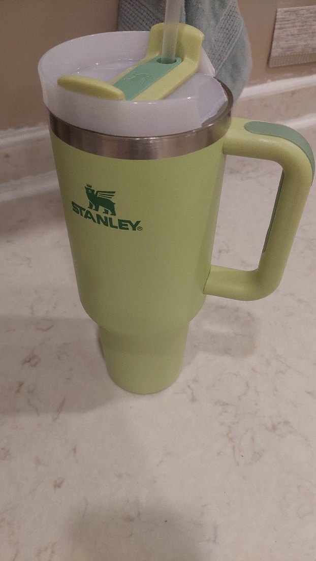 Stanley markalı, pastel yeşil renkte, tutma saplı ve kapaklı termos kupa. İçeceklerinizi sıcak tutar. ☕ kapağında çatlağı var fakat kullanıma engel değildir iyice inceleyip alınız. yedek parçası satiliyor.