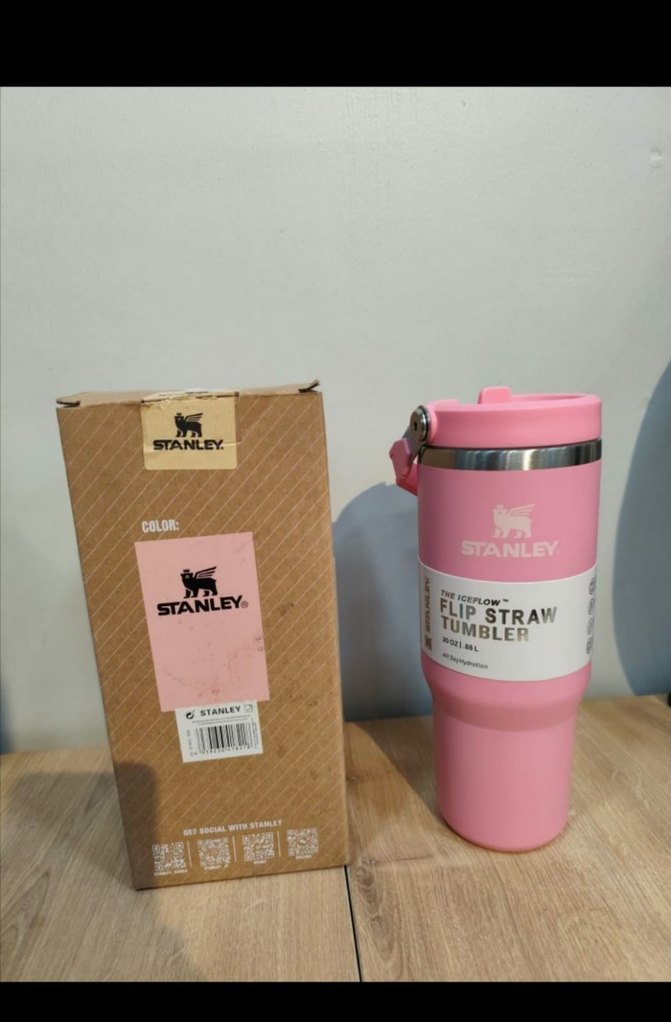 Stanley pembe termos şişe, kolay içim için flip pipete sahiptir. Pastel pembe renkte, paslanmaz çelik detaylıdır.