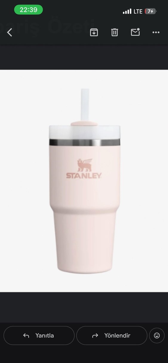 Stanley marka pastel pembe renkte, pipetli kapaklı çocuk termosu. İçecekleri sıcak veya soğuk tutar.