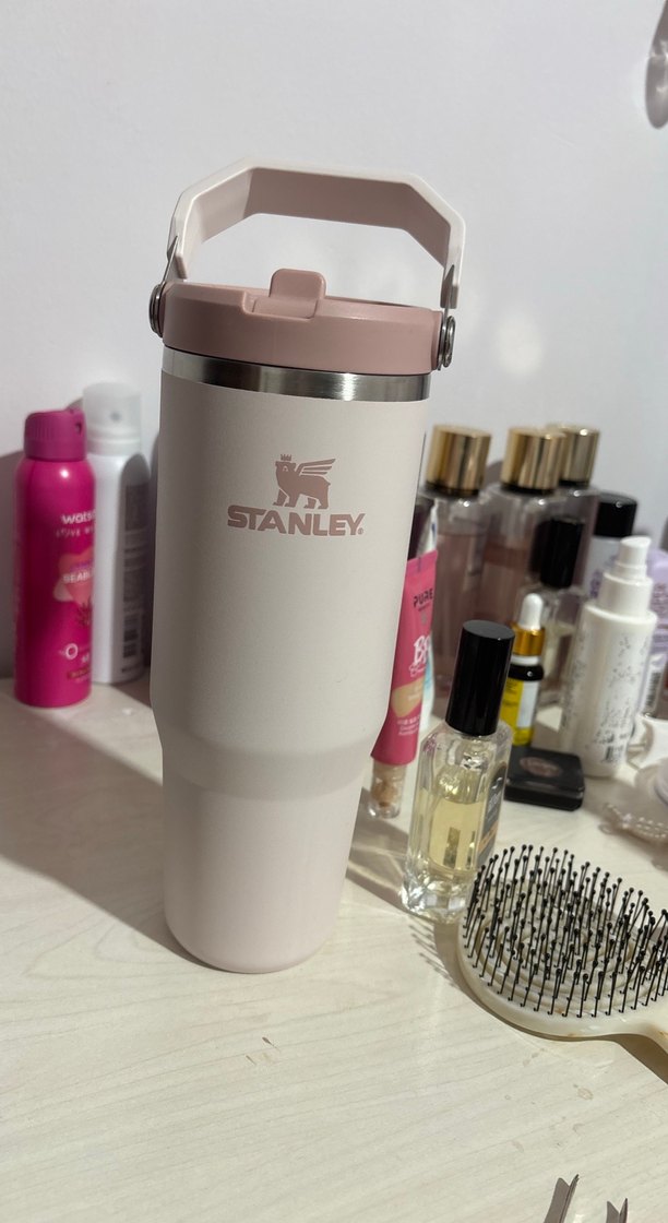 Stanley pembe çocuk termos şişesi, taşıma kolaylığı için sağlam sap ve içecekleri sıcak tutan kapak içerir. Dayanıklı malzemeden üretilmiştir. orijinal