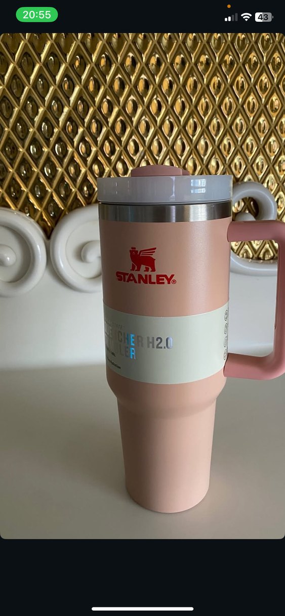 Pembe renkli Stanley seyahat kupası, güvenli kapak ve rahat tutma sapına sahiptir. İçeceklerin sıcak veya soğuk kalmasını sağlar. H2.0 etiketi bulunur. ☕