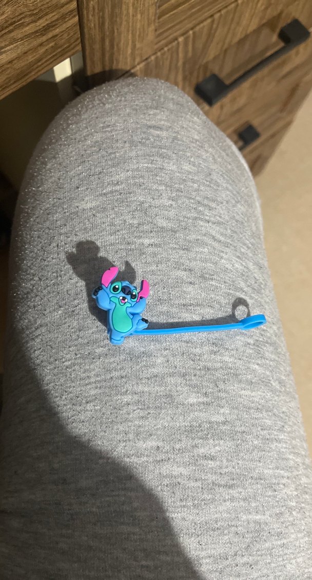 Gri renkte, elastik yapılı ve mavi figür detaylı kadın broş, günlük kullanım için uygundur ve rock punk tarzını yansıtır.