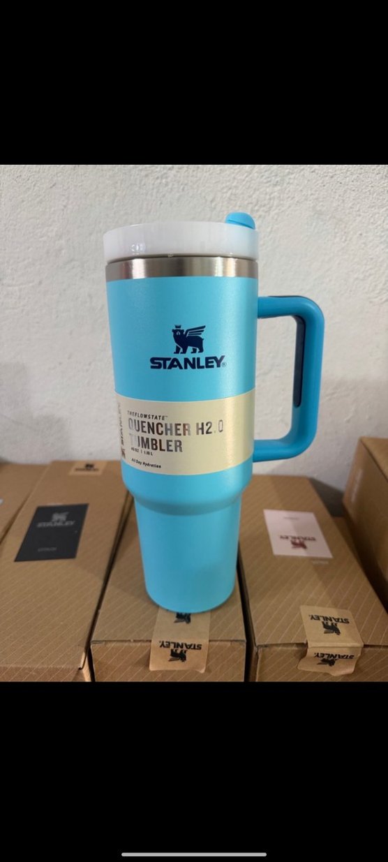 Parlak turkuaz renkli Stanley Quencher H2.0 Tumbler, tutma sapı ve güvenli kapak ile içeceklerinizi uygun sıcaklıkta tutar. ☕ 1,18 LT