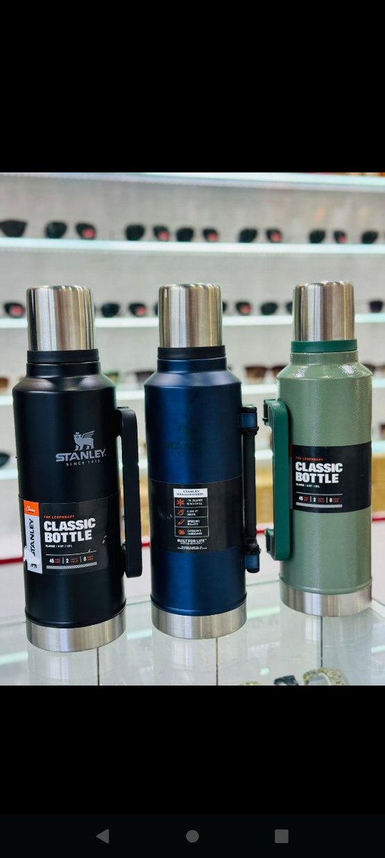 Stanley markalı, sağlam saplı ve paslanmaz çelikten yapılmış renkli çocuk termos şişesi. İçecekleri sıcak tutar ve taşınması kolaydır.