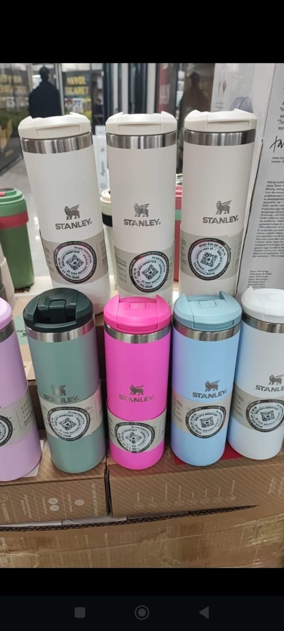 Stanley marka, pembe renkli çocuk termos şişesi, dayanıklı yapısı ve paslanmaz çelik detaylarıyla içecekleri sıcak veya soğuk tutar.