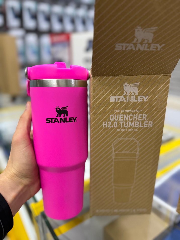 Stanley marka renkli pembe termos bardak, içecekleri sıcak veya soğuk tutar. Dayanıklı yapısı ve güvenli kapağı ile çocuklar için uygundur.
