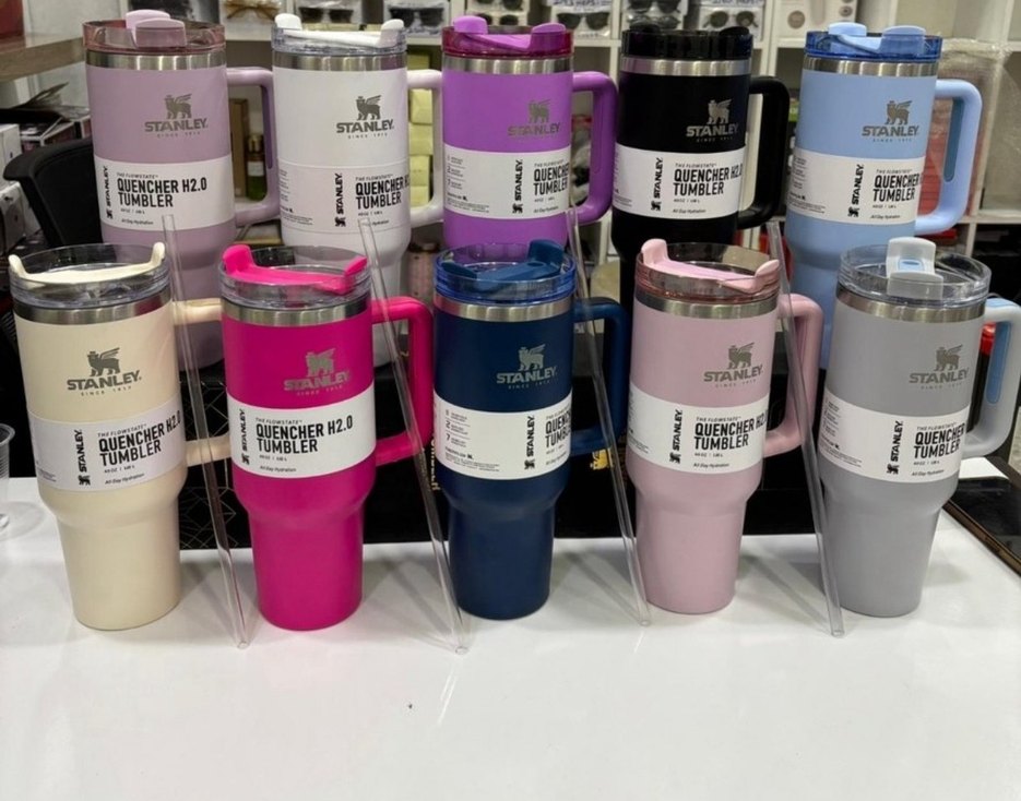 Stanley Quencher H2.O termos bardaklar, canlı renklerde, kulplu ve güvenli kapaklıdır. Sıcak veya soğuk içecekler için dayanıklı ve yalıtımlıdır.