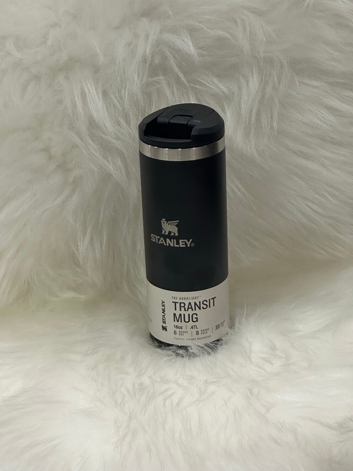 Stanley Transit Mug siyah renk, güvenli kapaklı, içecekleri sıcak veya soğuk tutmak için uygun. Dayanıklı ve taşınabilir tasarım. ☕