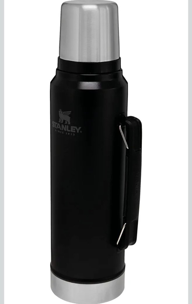 Stanley siyah çocuk termosu, sağlam saplı ve içecekleri sıcak tutar. Dayanıklı ve kullanışlıdır. 1L