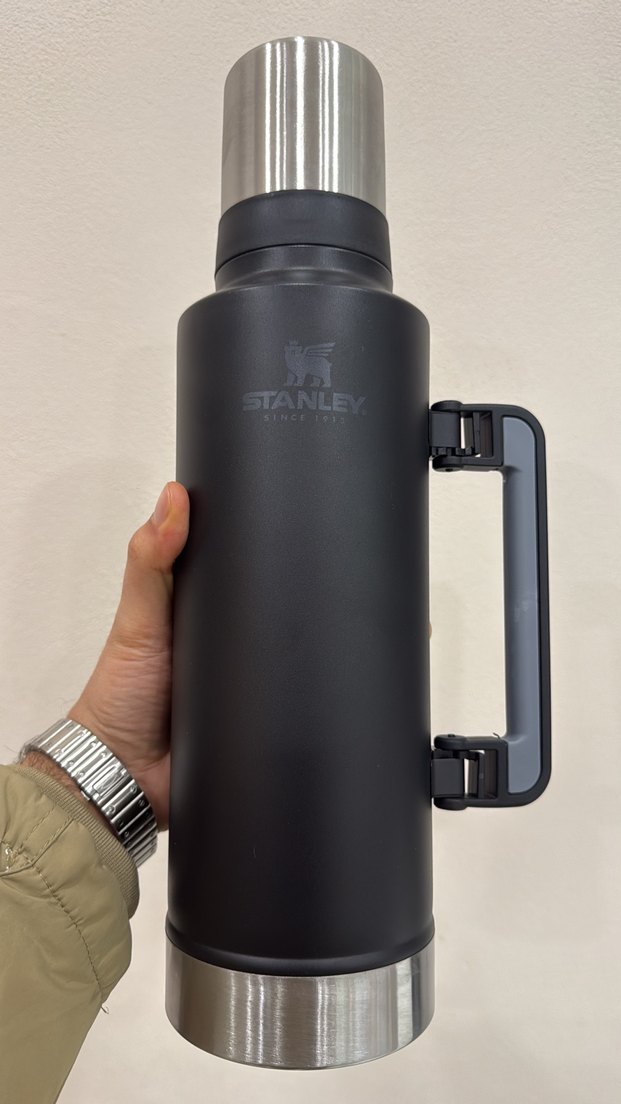 Stanley siyah termos şişe, dayanıklı tutacak ve uzun süre sıcak tutma özelliği ile için uygundur.