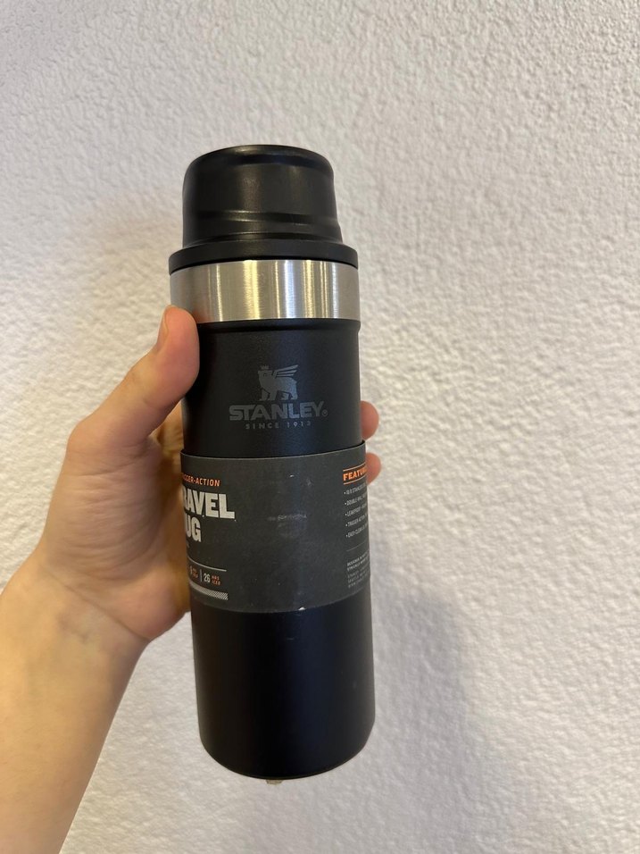 Stanley siyah seyahat termosu 0.47 litre kapasiteye sahip, kolay kullanım için tetik mekanizmalı kapağı var. İçecekleri 24 saat sıcak ve soğuk tutar. Ürün orjinaldir hiç kullanılmamıştır sıfırdır akıtma sızdırma yapmaz orjinal ürün