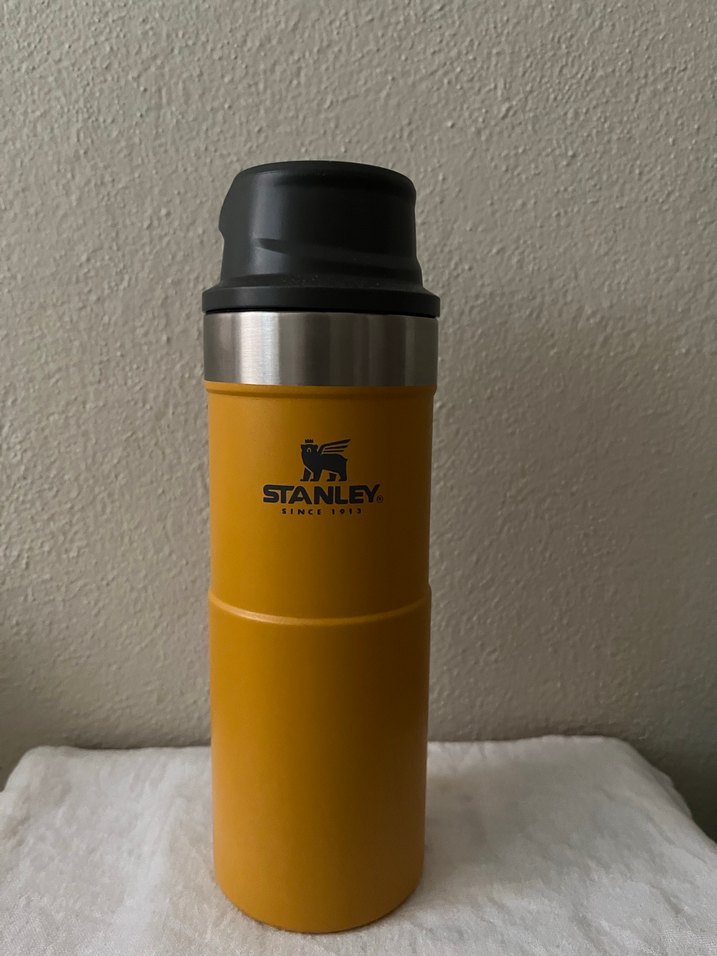 Orijinal stanley termos, hiç kullanılmadı. Hafif kılcal çizik var. Safran rengi, 0.35 ml #stanleytermos #termos