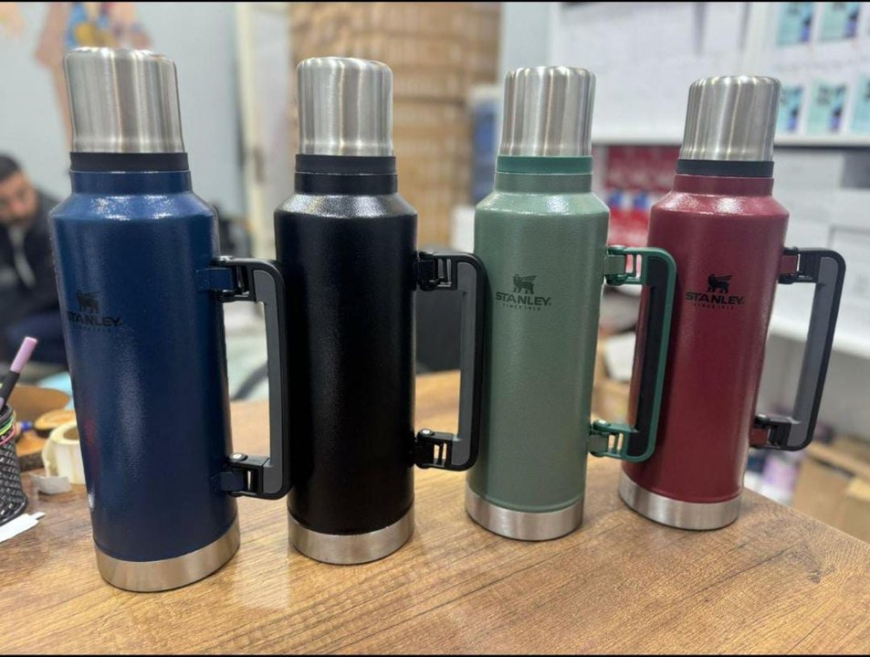 Stanley termos, dayanıklı sap ve paslanmaz çelik kapak ile kolay taşınır. İçecekleri sıcak tutar.