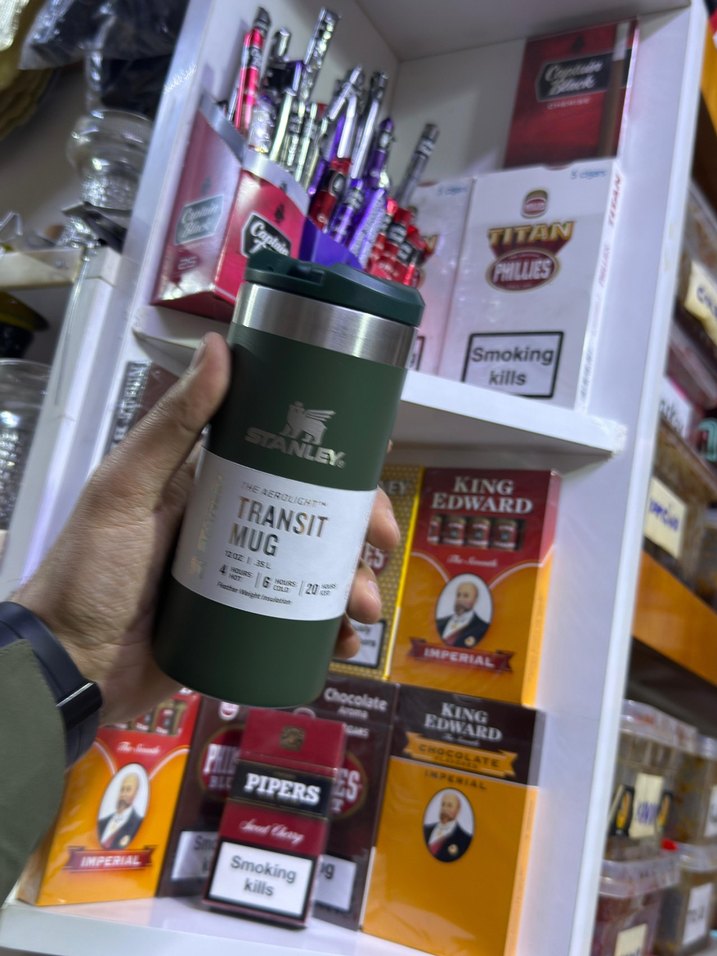 Stanley Transit Mug, koyu haki renkte, içecekleri sıcak veya soğuk tutar. Dayanıklı yapısı çocuk kullanımı için uygundur. ☕ orijinal yurtdışından gelmiştir