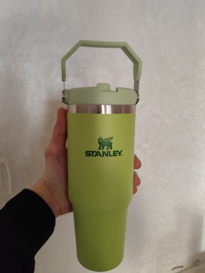 Stanley yeşil çocuk termosu, güvenli kapak ve taşınabilir kulpa sahip. Renkli tasarımıyla içecekleri sıcak tutar